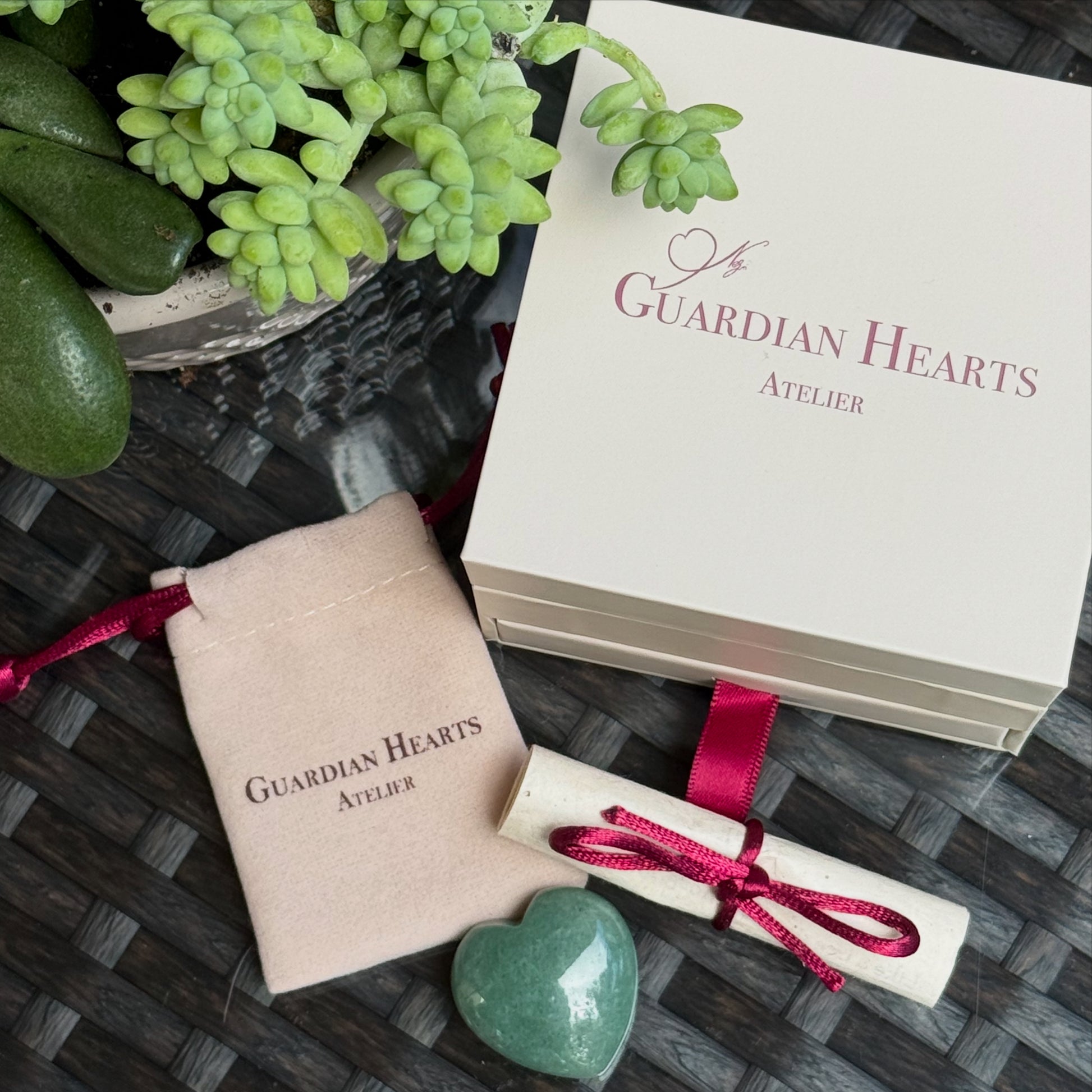 The Peace Heart is carved from Green Aventurine and is presented in a luxurious custom box, nestled in silk with its unique message hand-rolled and printed on natural Lokta paper. A hidden drawer reveals a velvet pouch so you can carry your heart wherever you go.